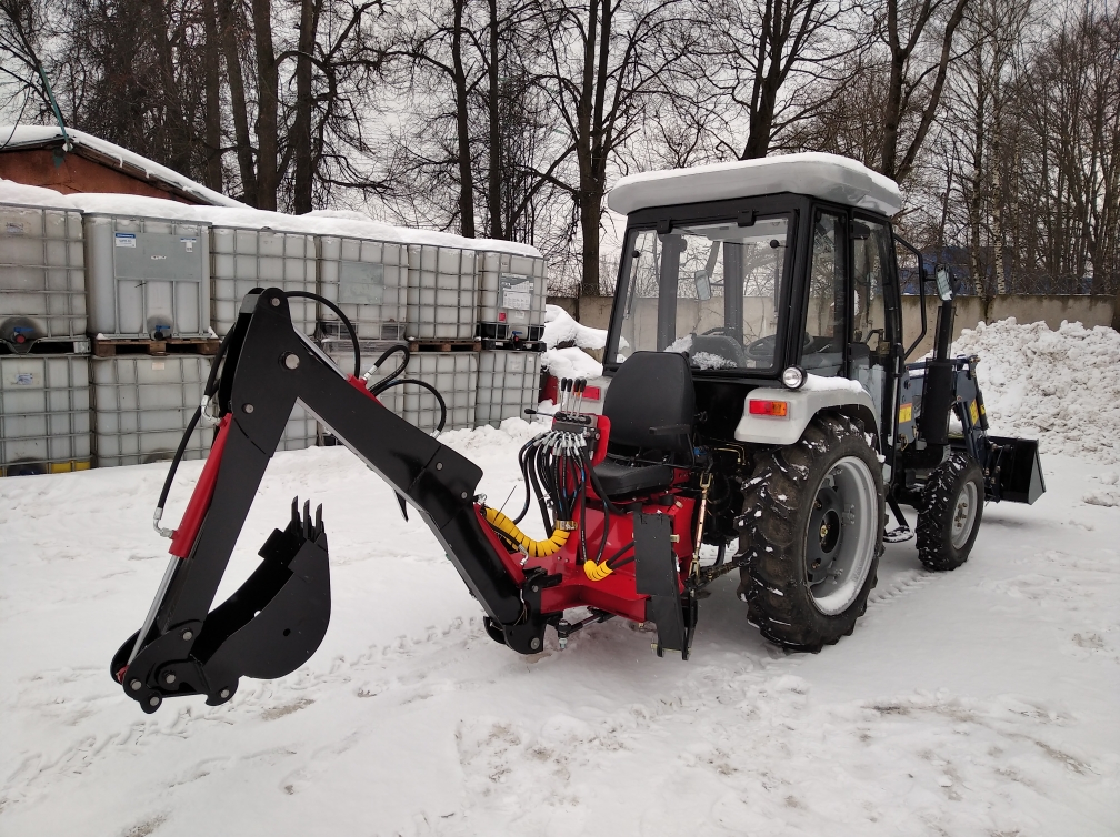Среди навесного оборудования для тракторов особым спросом пользуются навесные экскаваторы, работающие от ВОМ или штатной гидравлики трактора. На сегодняшний день интернет не сильно изобилует предложениями продажи подобного рода техники, да и цена навесных экскаваторов порой кусается, даже на модели из Китая. На рынке более менее распространена навеска на трактора МТЗ (Беларусь), в частности на МТЗ 80 и 82. Однако данная машина относится к классу полноразмерных тракторов. А нас интересует именно сегмент мини-техники, в частности минитрактора. В России такие агрегаты не производятся, за исключением нашей торговой марки. Отметим, что в данном типоразмере такой глубины выкапывания (2.3 метра) нет ни у кого.