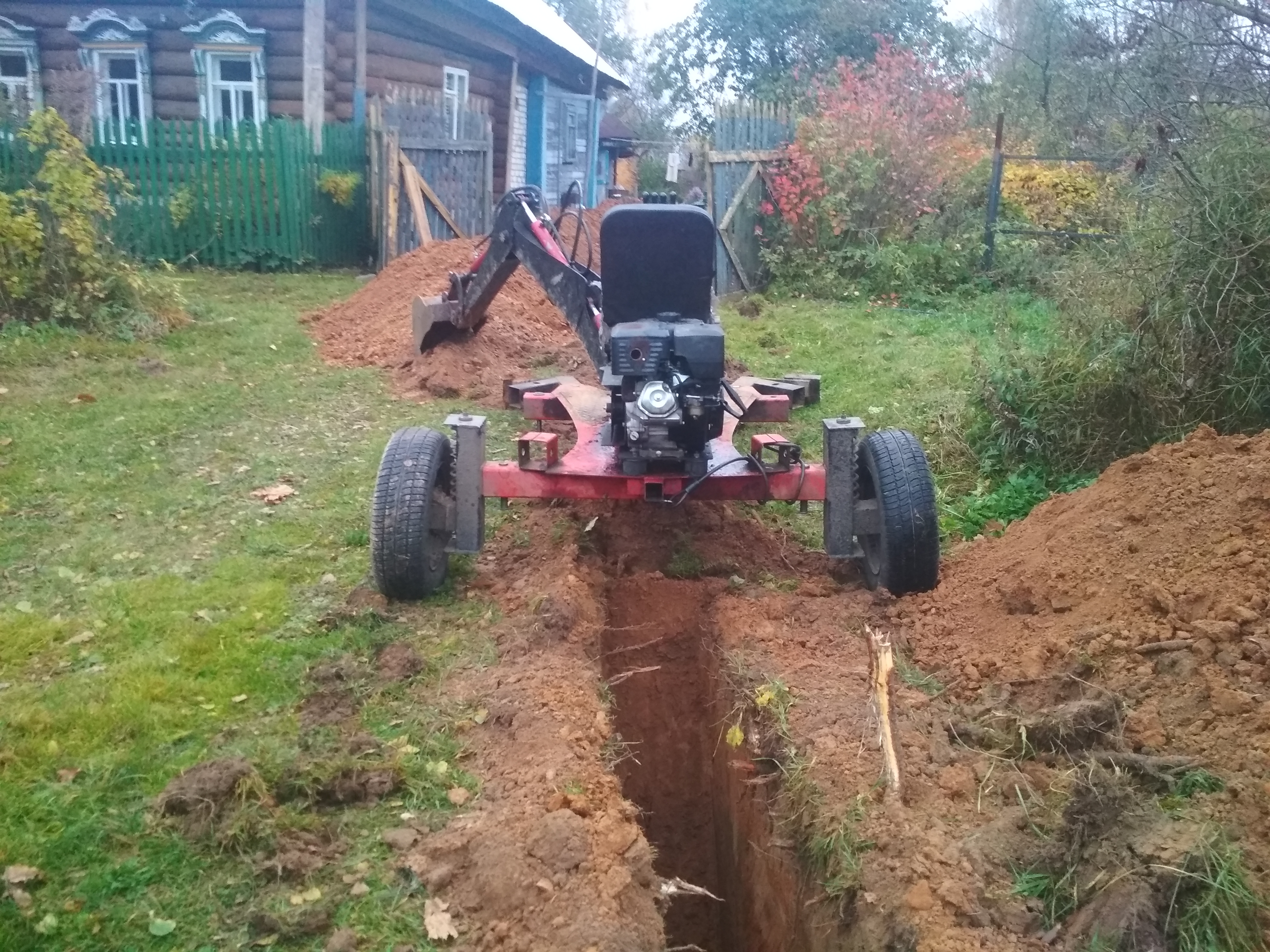 (ПТС по запросу) - Бензиновый двигатель 9 л.с. - Рабочий цилиндр стрелы повышенной мощности D63 - Манометр - Один ковш в комплекте (35 см шириной) - Ступицы без пружин - БУКСИРОВКА ПО ЛЮБЫМ ДОРОГАМ с ПТС |